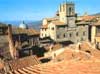 MONTALCINO Without doubt, Montalcino lives a life of many souls. Montalcino as the birthplace of Brunello wine, whic someone once defined as the best and most renowned wine in Italy. From the height of its 564 m. the ancient town dominates the surrounding countryside, clinging to the slopes of a hill crowned by the imposing 14th-century fortress. In the labyrinth of little streets, amongst artisans'shops, small cafès and places selling typical local produce ( besides the wine, their honey and locally-made biscuits called "dead bones" are also well-known) the sights worth seeing are the fine Town Hall, the Bishp's Palace ( housing the United Civic, Diocesan and Archaeological Museums, with works by important 13th-16th century Sienese artists, such as Bartolo di Fredi, Il Sodoma, Bartolomeo Neroni), the antique Crucifix of Saint Antimus dating back to the mid-12th century, and the churches of Saint Augustine, Saint Giles and Saint Francis, all built between the 13th and 14th centuries, as well as the Sanctuary of our Lady of Succour. But it is just a little way out of town, near Castelnuovo dell'Abate in the Starcia valley that thhe heart of Montalcino spirituality is to be found:the Romanesque abbey of St.Antimus, a striking little temple enveloped in an almost magical atmosphere, founded by Charlemagne in 781. Finally, there are several castles on Montalcino land: the one worthy of mention is Poggio alle Mura, which has Longobard origins.